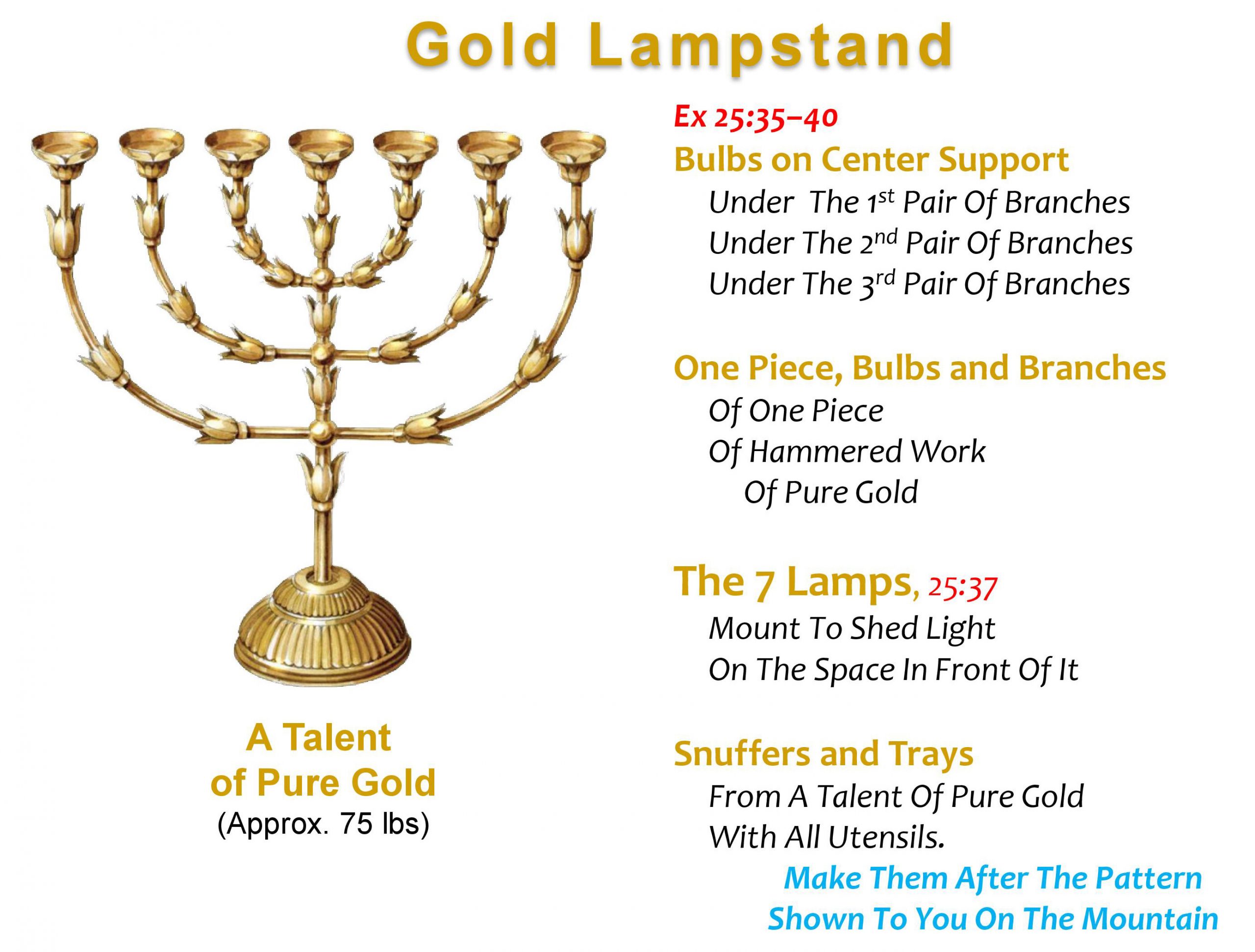 A lampstand of pure gold, crafted with care,